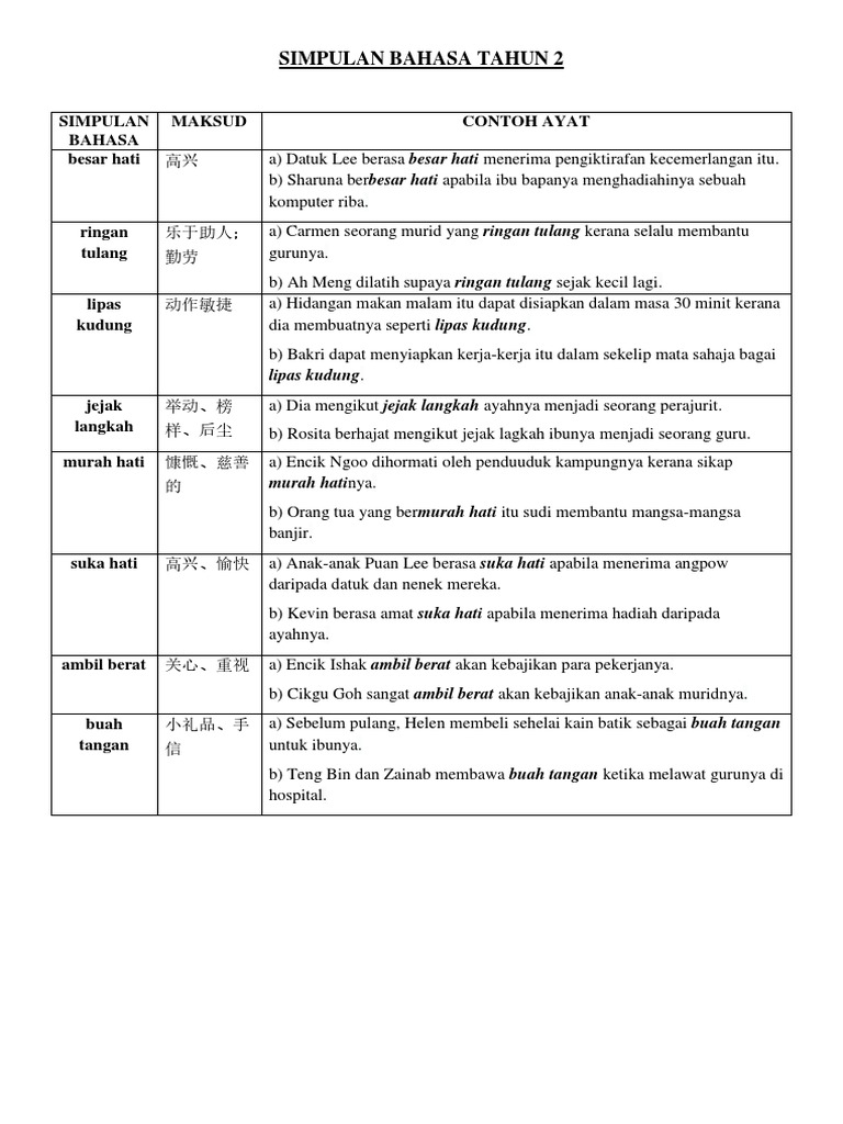Contoh Ayat Simpulan Bahasa Tahun 2 Pdf